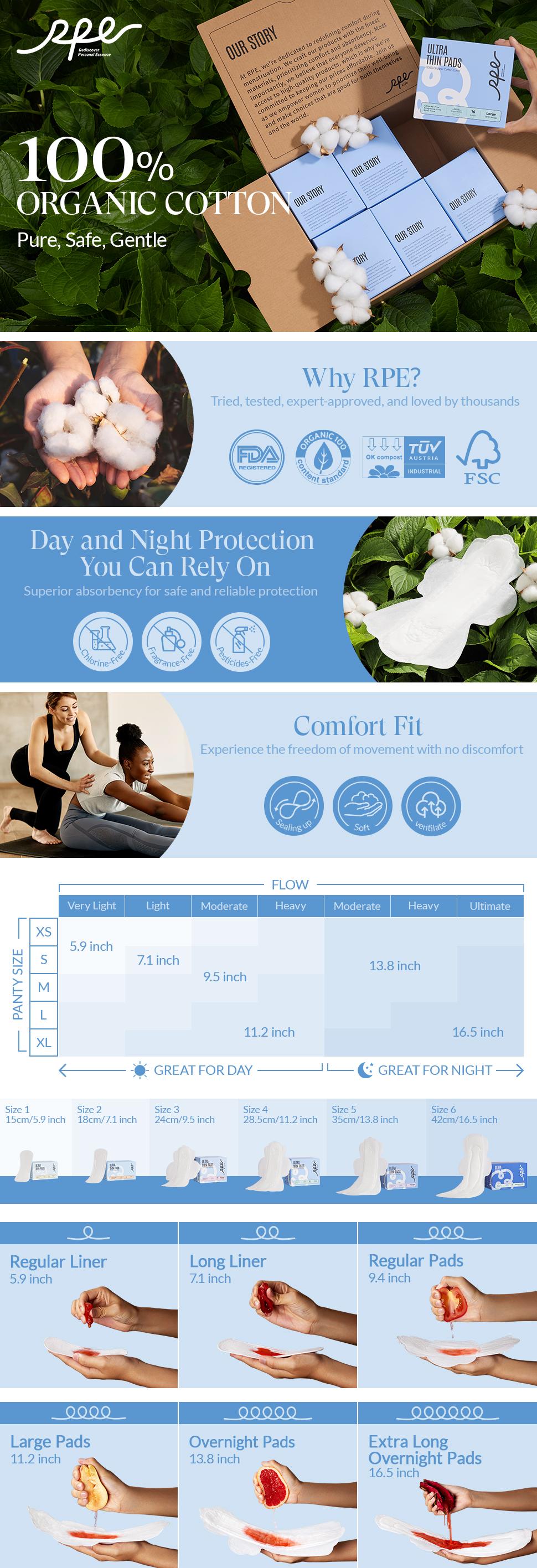 • RPE - REDISCOVER PERSEONAL ESSENCE: Designed for Every Woman, Every Need: With options for light to heavy flow and regular to overnight protection, our pads adapt to your unique needs. Safe and suitable for all women and skin types.