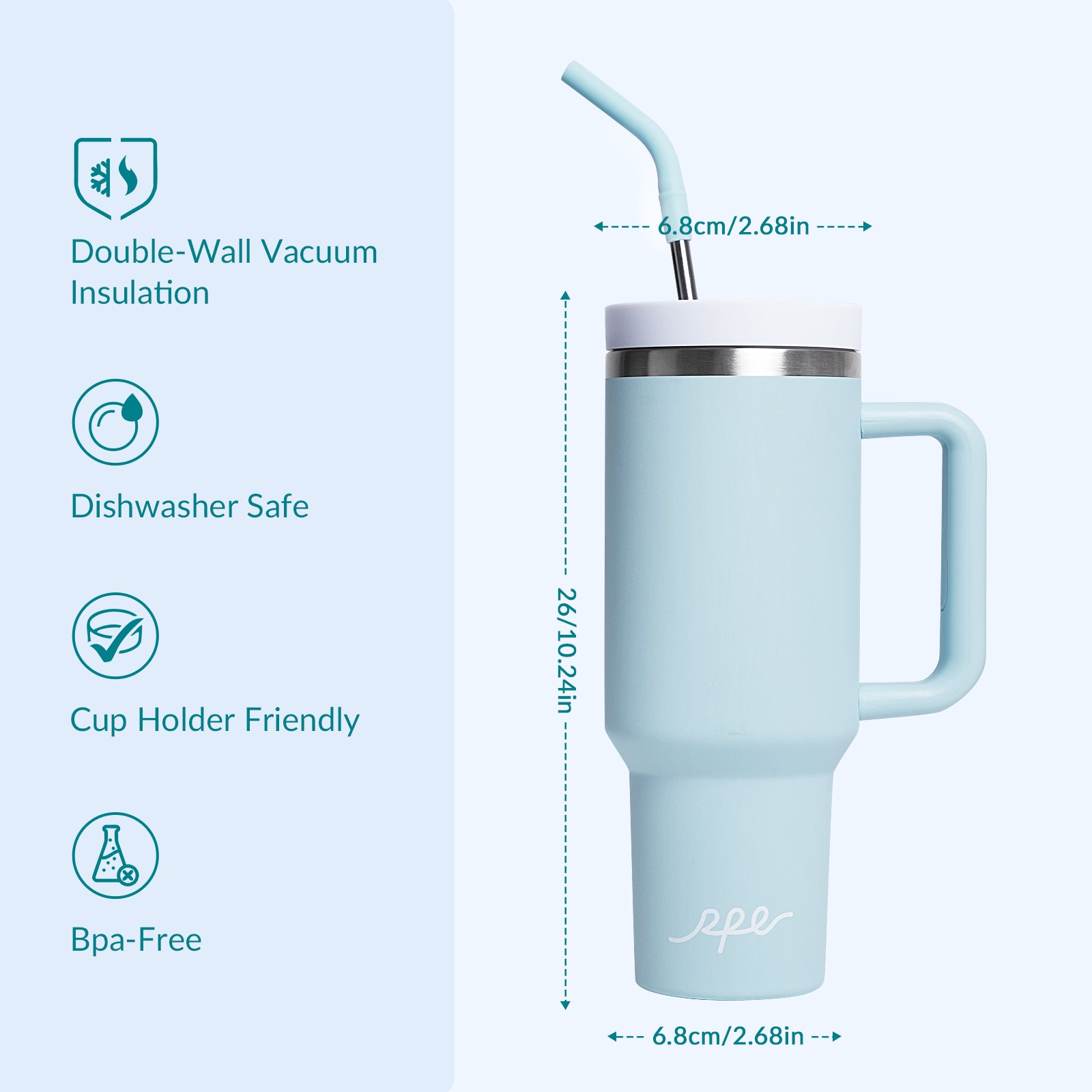 - MADE TO FIT YOUR LIFE: The ergonomic, rotating handle lets you quickly grab this cute tumbler with straw and go; Fits comfortably in the cupholders in your car or on exercise machines; Easy to clean and dishwasher safe.